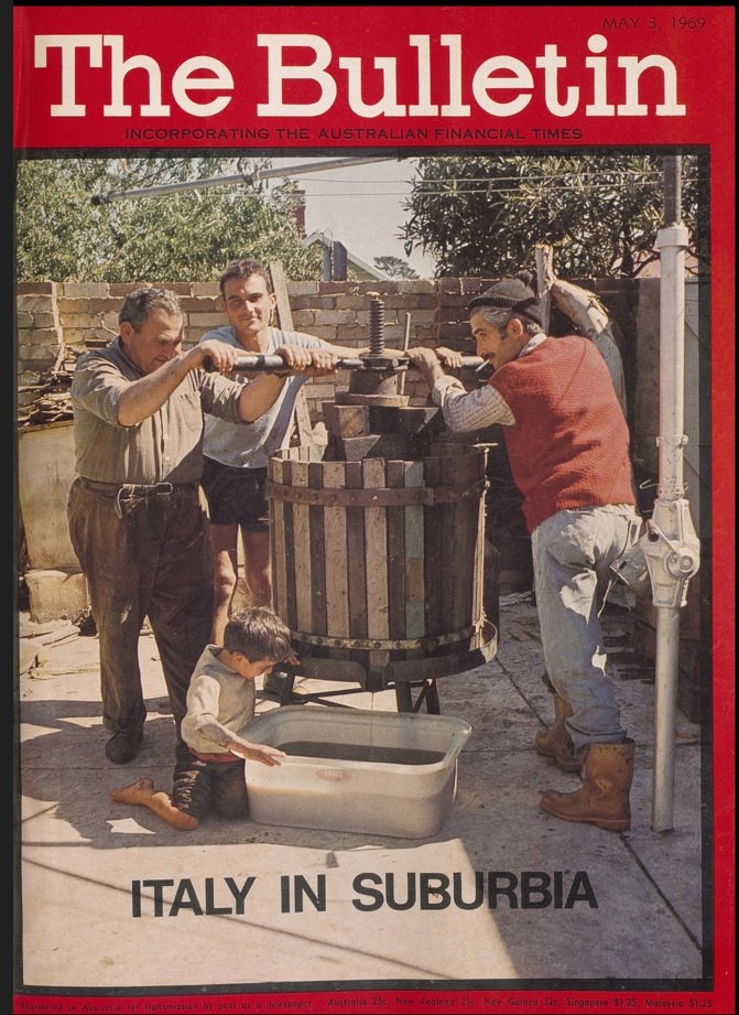 “The Italian flavor and feeling are seeping out everywhere. Our urban diet used to be the bottle of Fosters and the meat pie… now, more and more, the urban diet is the bottle of red and a pizza…” So wrote “Batman” (aka Keith Dunstan) in this 1969 cover story for The Bulletin, at a time when the food traditions of Italian migrants were beginning to make a significant impact on the mainstream food culture. Source: Trove